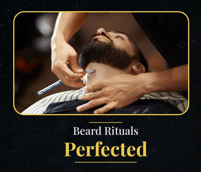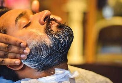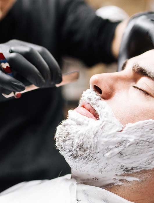 - Keep wet tissue on eyes & start Clipping/ trimming of the beard / Use comb and scissors/ Shaping ( make sure u open razor front of client & dispose the same in front of client after use)